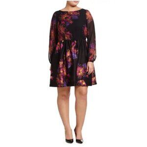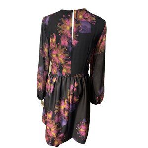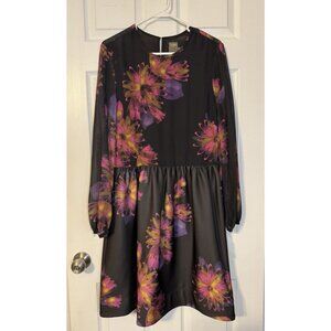 Taylor Dress 12 Black Plum Pink Floral Sheer Long Sleeve A Line Stretch NEW