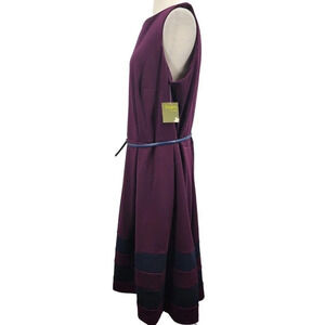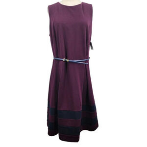 Taylor‎ Dress Dia & Co Purple Navy Blue Belted A-Line Dress Size 18W NWT