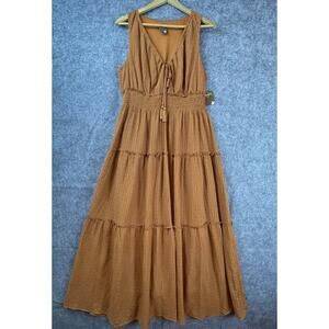 Taylor Dress Large Rust Tassel Tiered Smocked Ruffle Cottage Peasant Country