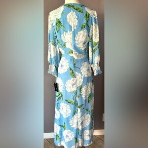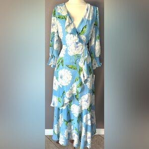 Taylor Dress Maxi Blue Floral Print A Line Size 8 Flowy Long Sleeve V Neck NWT