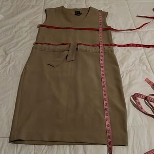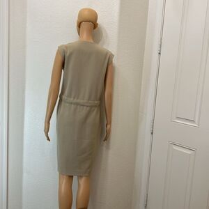 Taylor Dress Sz 2 VNeck Sleeveless Beige Tan Brown Adjustable Tie Waistband Midi