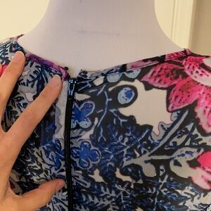 Worn once. Very pretty floral sleeveless dress. Features a belt (note the belt loops on both sides are down but can be cut off, not needed). Tea length. Pretty for church, Easter.