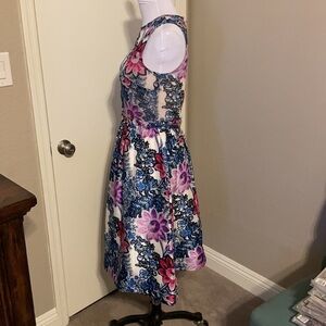 Taylor Dress Tea Length Floral Sleeveless Fit Flare Spring Summer Garden Sz 10