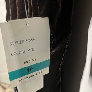 Chic strapless gown by Taylor Dresses. Rich brown velvet with a stylish slit. Perfect for elegant evenings.