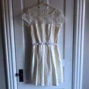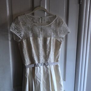 Taylor Dresses White Lace Cap Sleeve Fit and Flare Mini Wedding Dress Size 12