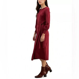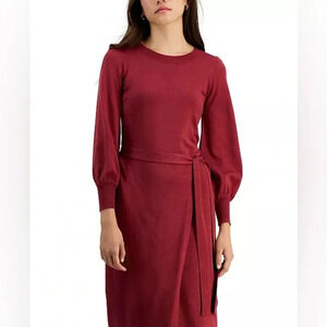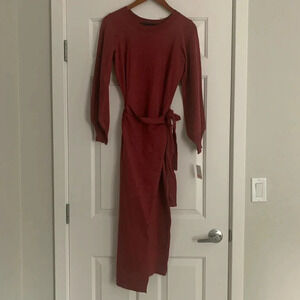 Taylor Faux-Wrap Belted Midi Sweater Dress - Size S - Cognac - NWT