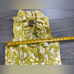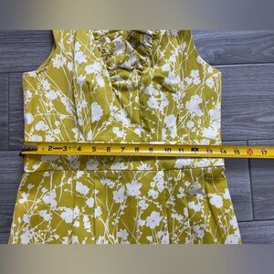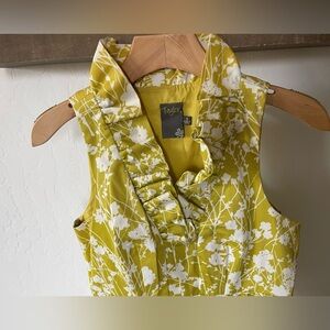 Beautiful women’s floral dress by Taylor in bright neon green tones, size 4. This structured dress is short sleeve with ruffle v-neck detail. Perfect to pair with heels this spring ✨