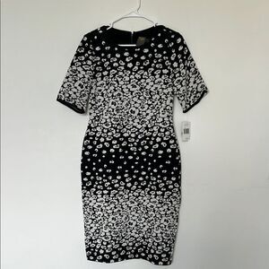 Taylor Floral Midi Sheath Dress Black and White Size 8 NWT