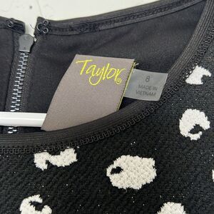 Taylor, floral dress, sheath midi, classic black and white, cocktail dress, wedding guest outfit, office party dress, timeless style, size 8 NWT, professional wear, elegant formal dress