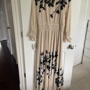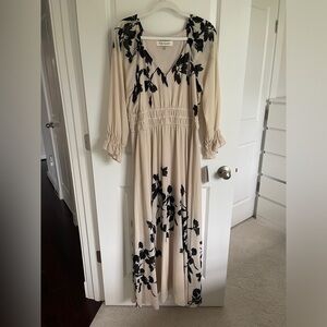 This Taylor maxi dress showcases a sophisticated floral pattern, offering a perfect blend of elegance and comfort. Its flowing silhouette makes it ideal for special occasions, ensuring you stand out with grace and style. NET size 10