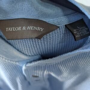 Taylor & Henry Henley Shirt Mens L Light Blue Long Sleeve