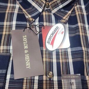 Taylor & Henry Men's Medium Plaid Long Sleeve Button-Up Shirt with Scotchgard