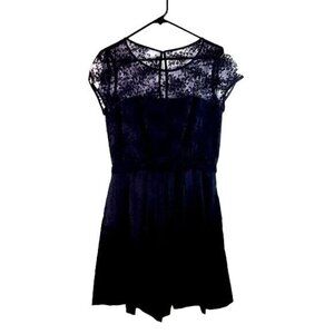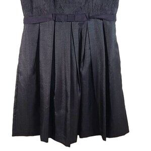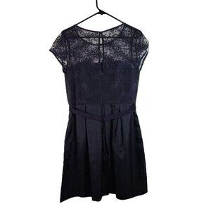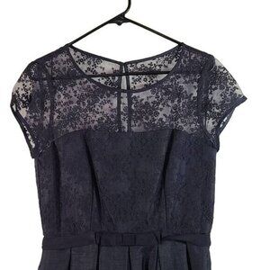 Taylor Illusion Yoke Shangtung Fit and Flare Dress Navy Blue Size 10