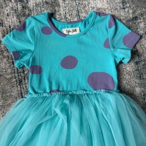Adorable teal dress with purple polka dots and a tulle skirt. Inspired by Sully from Monsters Inc. Wore once to Disney. Good condition, possibly light stain on top but looks overall good. Brand is Taylor Joelle. Non-smoking home. Size 3.