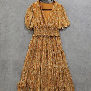 Taylor Layered Maxi Dress Size Large? Short Sleeve Geometric Ruffle Smocked Sheer