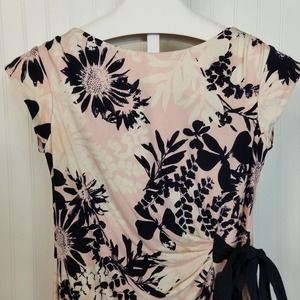 Excellent used condition, no holes tears snags or stains. Taylor for A Pea In The Pod, navy and pink maternity dress. Floral pattern, crew neck, cap sleeves, adjustable side tie for a comfortable fit.