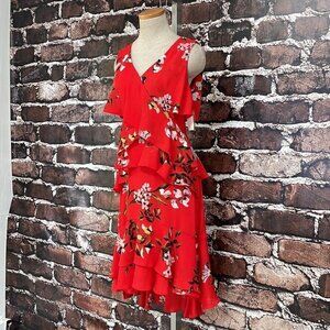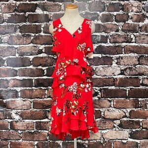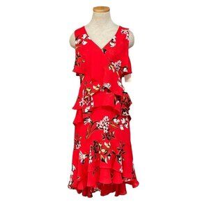 Taylor Midi NWT Dress V Neck Floral Red Ruffles Size 4