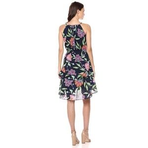 Taylor NWT Navy Floral Print Keyhole Front Tiered Spring Summer Dress Size 2