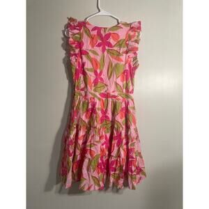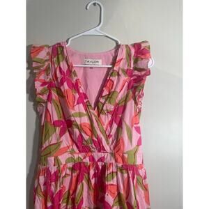 Taylor Pink Tropical Floral Print Ruffle Mini Dress