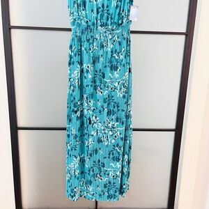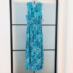 This beautiful dress by Taylor is perfect for any summer occasion. The floral print and pleated accents add a touch of elegance to the sleeveless sheath style. The dress is brand new with tags and is a size 8, perfect for a regular fit. The dress length is long and the color is a lovely blue green that will complement any skin tone. The pattern features a beautiful flower theme that is sure to turn heads. Ideal for women who love fashion and want to make a statement, this dress is a must-have for any wardrobe.