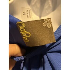 The Taylor Royal Blue Azure Chiffon V-neck High Low Midi Dress is a stylish and elegant choice for women. With its 3/4 balloon sleeves and V-neckline, this dress exudes a feminine and sophisticated vibe. The chiffon fabric adds a touch of luxury, while the zip closure and trapeze & swing style make it comfortable and easy to wear. Perfect for a special occasion or a casual day out, this dress in size Medium is a versatile addition to any wardrobe.