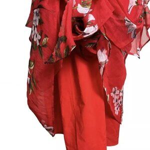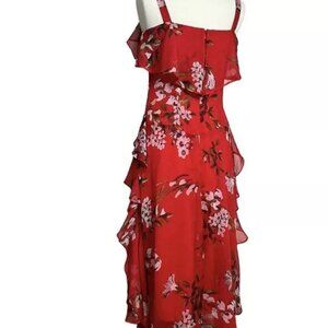 Taylor Ruffle Chiffon Dress 8 Red Floral Waterfall Sleeveless Lined V-Neck Frill