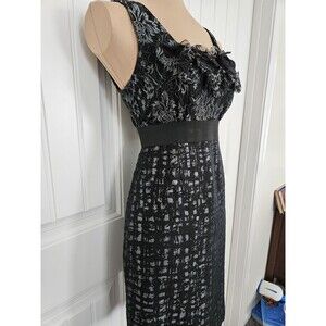 Taylor Ruffle Neck Metallic Cocktail Dress Size 6 Gray Black Silver fixable flaw