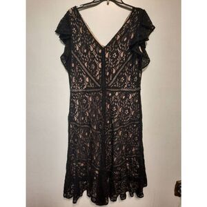 Taylor Ruffle Sleeve Black Lace Dress Size 16