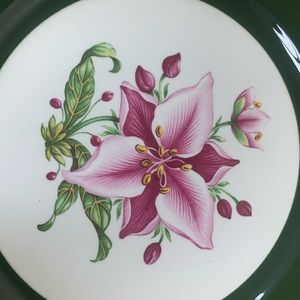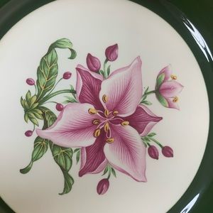 Pattern is Appalachian Heirloom Bonnie. with a 22K Gold rim.