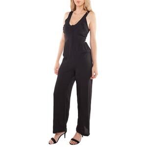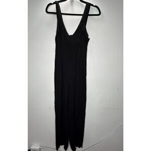 Taylor & Sage Black Semi-Sheer V Neck Button & Loop Front Wide Leg Jumpsuit S