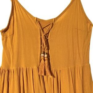 Taylor & Sage Sun Dress XS Extra Spaghetti Straps Mustard Yellow Crinkle Fabric