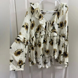Taylor & Sage Sunflower Boho flowy ruffled top