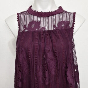 Taylor & Sage Whimsygoth Mesh Witchy Embroidered Lace Babydoll Purple Top Size L