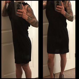 New w/o tags Dry clean only. Was bought at A Pea in the Pod but looks adorable even if your not expecting. Wear with a leather jacket and ankle boots for that stylish look. The top layer is sheer with a solid black under layer