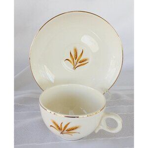 Taylor Smith & Taylor TS&T Wheat Pattern Cup Saucer Set Vtg 1950s Mid-Century