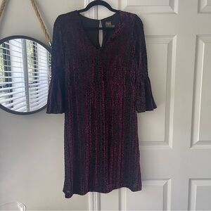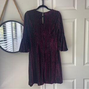 Taylor dress, velvet burnout dress, smocked sleeve dress, A-line party dress, holiday velvet dress, semi formal dress, cocktail dress size 8, textured velvet dress, evening dress, faux velvet burnout, romantic sleeve dress, event outfit, fall winter party dress.