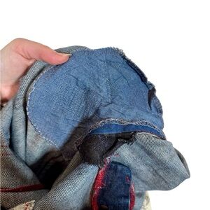 These have been perfectly broken in with fading in all the right places. There has been a patch and repairs in the crotch/seat, as shown in photos