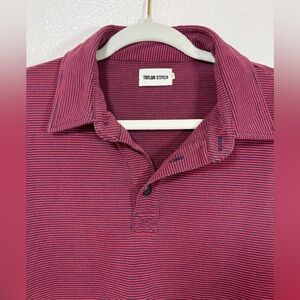 Taylor Stitch Men’s 40 (Medium) Polo Collared Shirt Red Blue Stripe Short Sleeve