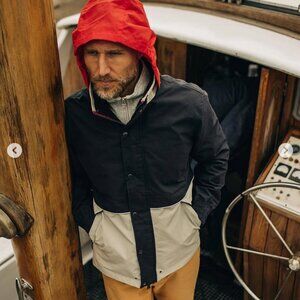The Navigator Jacket in Natural & Navy Colorblock is a perfect distillation of our promise to Protect Wild, Forever. Its 100% BCI cotton shell is treated with a new washable wax finish (by the masters at Halley Stevensons) and is just as effective at protecting you from the elements as it is at protecting the elements themselves. Every aspect of the design for The Navigator is geared towards inspiring you to get out there and explore. From the adjustable shock cords at the hem and hood, to the moisture dispersing mesh lining, to its profusion of useful pockets, the Navigator Jacket can take on the harshest of conditions while keeping you comfortable and dry. So the next time you’re blazing trails or charting new waters, the only concern you’ll be left with is where to go next.