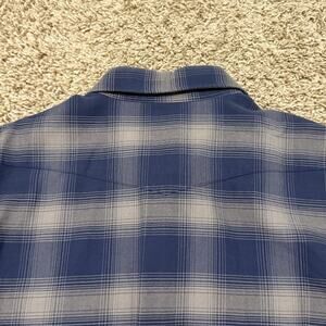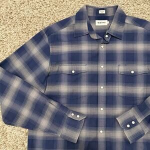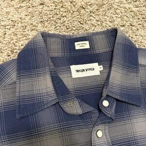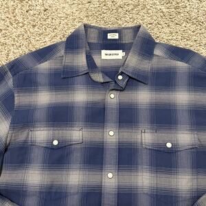 Taylor Stitch Pearl Snap Button Up Shirt Western Blue Grey Plaid Size 46 / XXL