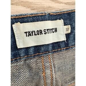 Taylor Stitch Democratic Jeans in men's size 32. Classic medium-wash raw denim with a straight-leg fit and button fly. Known for their craftsmanship, these jeans are made in the USA from premium materials and built to last. Perfect for workwear lovers, denim collectors, and fans of rugged, everyday essentials. Light fading and whiskering for an authentic vintage vibe. No rips or stains.