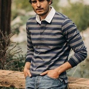 Taylor Stitch The Heavy Bag Rugby in Navy Stripe Collared Henley Shirt Size S/38
