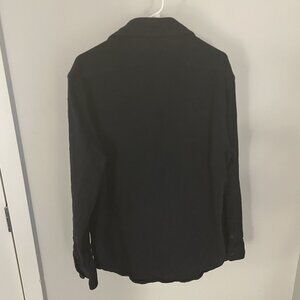 8-oz. 55% linen, 45% organic cotton. Charcoal buttons.