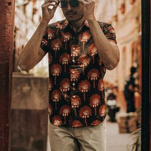 Taylor Stitch The Short Sleeve Hawthorne in Mirage Palm Linen Blend Button Up Hawaiian Shirt XS