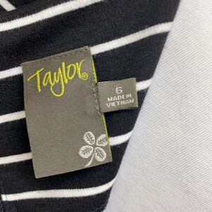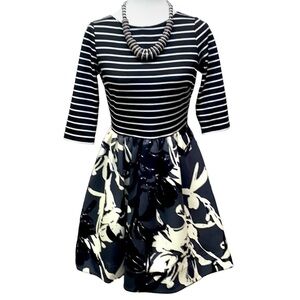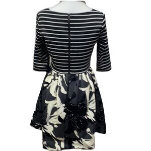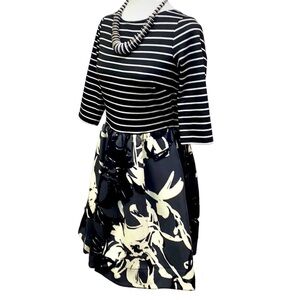 Black & white striped top with light scuba floral skirt in gray , black & winter white