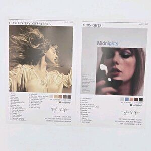 This product is a set of 14 Taylor Swift 8 x 12 album cover posters, perfect for decorating your bedroom or any room in your home. As a music memorabilia item, these posters feature the iconic rock and pop artist Taylor Swift and are a must-have for any Taylor Swift fan. The posters are new and ideal for showcasing your love for the artist and her music.