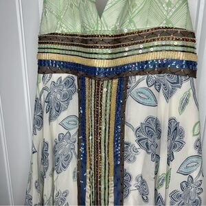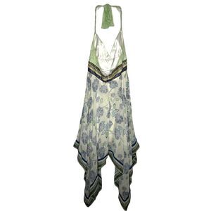 Taylor Swift BCBGMaxAzria Blue Mint Print Beaded Silk Dress Rare Halter 2 Hanky