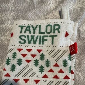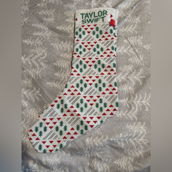 RARE Taylor Swift Christmas stocking. I believe I got this from Taylor’s online store during the original RED Era between 2012-2013, however, there is no manufacturing tag to confirm that. In really great condition with only a couple flaws (see last two pictures). There is a spot of discoloration of the material near the lettering at the top, only visible on one side of the stocking. There are also a few loose threads caused by a possible stitching error during manufacturing, it came this way. This is hardly noticeable and would be an easy fix for someone good at sewing! Pricing to reflect rarity, will consider offers!