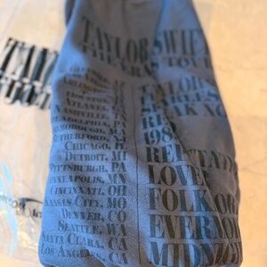 Brand New Official Taylor Swift Merch. Grey Blue Crewneck sweatshirt only sold at the eras tour shows, this was purchased from the LA N4 show so the back lists all the shows through LA. It is brand new with tags and comes with the eras tour clear shopping bag it was bought in.