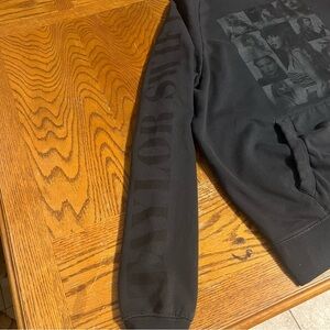 Preowned, fading to the writing on the back of the hoodie and one sleeve.